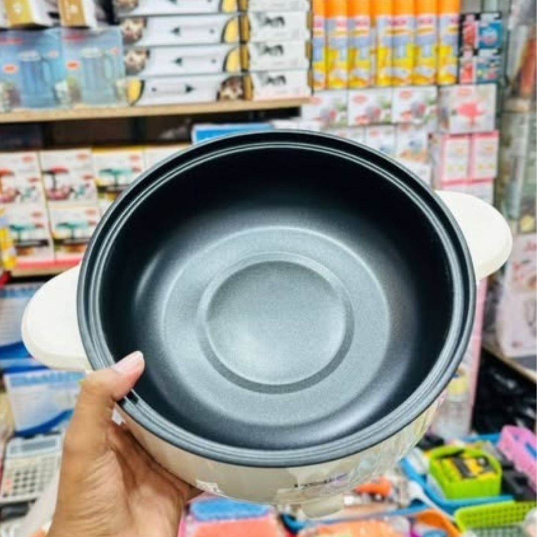 This cooker runs on electricity only, so no gas and no fire, making it a safe and eco-friendly choice. Its powerful heating system ensures quick and even cooking, whether you are preparing rice, curry, noodles, soup, fry items or hot pot meals.